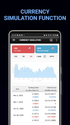 Check the visual exchange rate change trend in a graph, and even more precise exchange rate analysis is possible with currency simulation and real-time exchange rate adjustment functions.