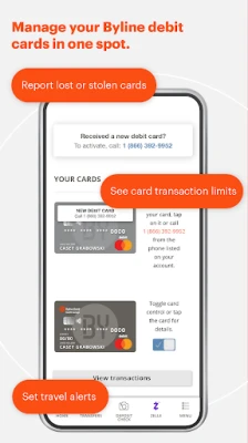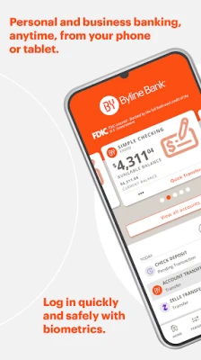Use the Byline Bank Mobile app to securely do personal and business banking from your phone or tablet. View account balances, make transfers, deposit checks, pay bills, send money with Zelle®, manage debit cards, and more.