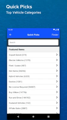 • Search over 250,000 vehicles in online auto auctions by location, date, and vehicle type