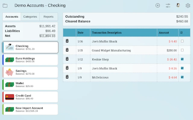 EZ Register is a personal finance management and accounting solution for people who just want to get things done. Quickly and easily create accounts to track your expenses, revenues, finances, and more. Supports multiple accounts and ledgers. You can track Bitcoin wallet values, although this app does not function as a traditional bitcoin wallet, value tracking for existing wallets only. Use graphs to track and control your spending habits. Backup your data, sync your ledgers between devices, and print your accounts right from within the app. You can even password protect your ledgers for added security.